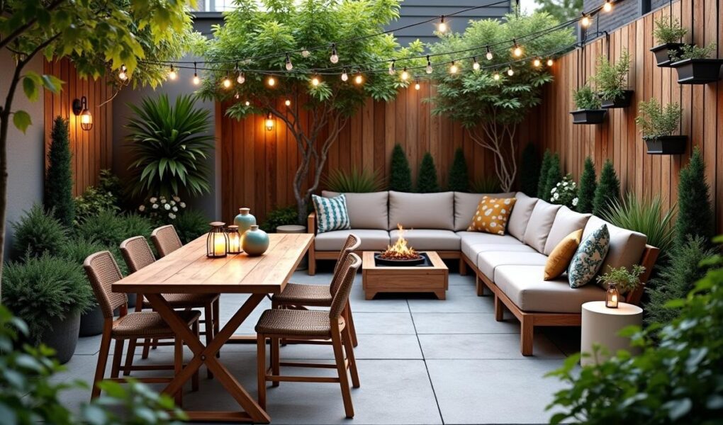Small outdoor living spaces can still feel expansive with smart planning. Space optimization for patios involves using every corner effectively. Don’t shy away from multi-tier shelving or raised garden boxes along the edges for a cohesive look that accommodates seating in the center. This layout works well for those who love to garden and entertain simultaneously.