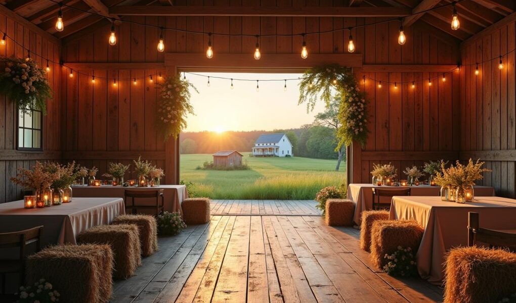 Barn weddings remain a favorite for couples aiming to blend cozy style with elegant rustic themes. A well-preserved barn sets the stage for heartwarming festivities, offering space for a barn reception that’s both inviting and intimate. You can play up the wooden features with draped fabrics, soft lighting, and thoughtful florals for a refined, yet laid-back atmosphere.